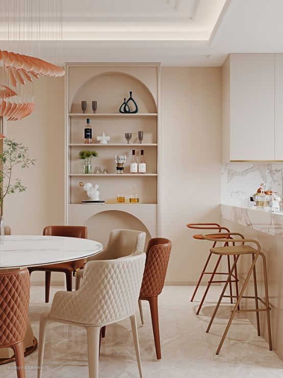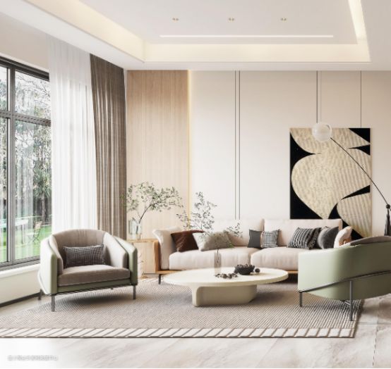 侘寂风奶油配色特点:整体配色会偏奶咖色一点,除了温柔的氛围,更给空间一种淡泊岁月的感觉。