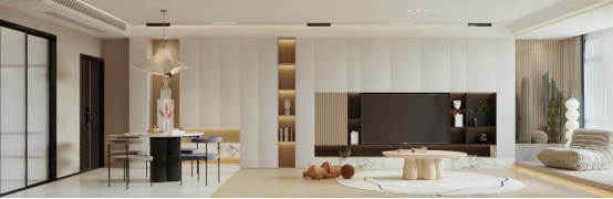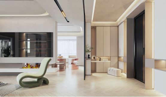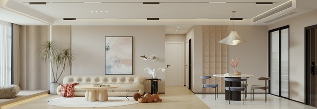 奶油风的灯光设计,以氛围感十足的无主灯设计为主。不仅符合奶油系风格的极简大气,同时还可以均匀的进行空间照明。