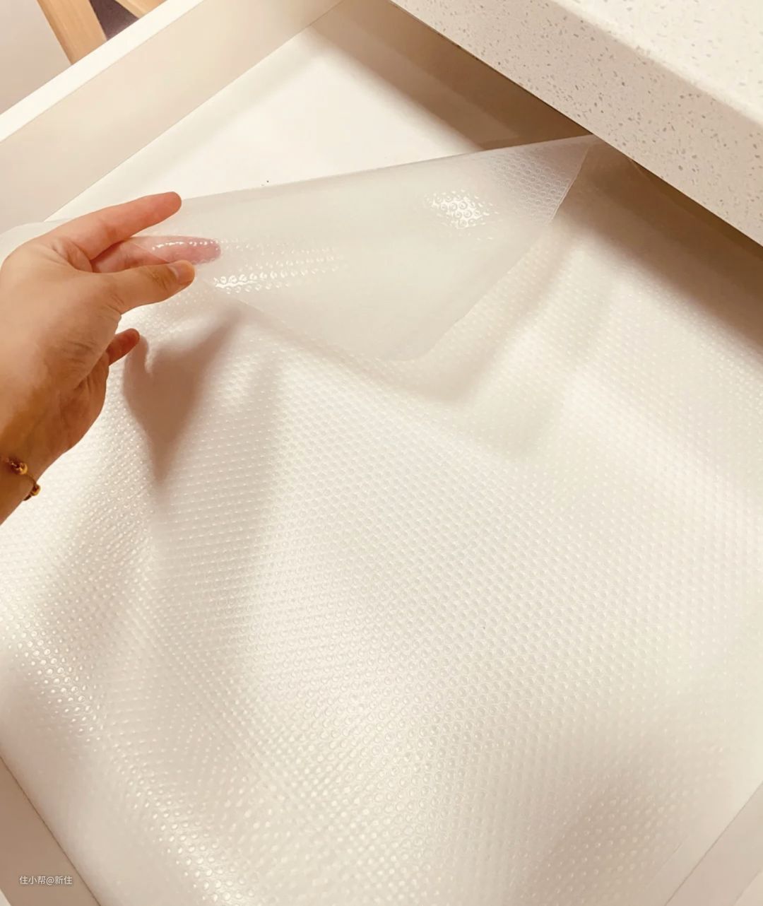 如果你被类似问题困扰已久,可以尝试在抽屉内铺上波点垫,上面有小波点,具有防滑、隔脏的作用。