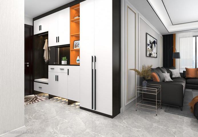 如果你家里的户型是进门无玄关,门后空间狭小,小编建议抛去大玄关柜,选择简约式轻便型的鞋柜。像这款玄关柜造型就非常小巧灵活,也给家带来更多的便利和舒适。