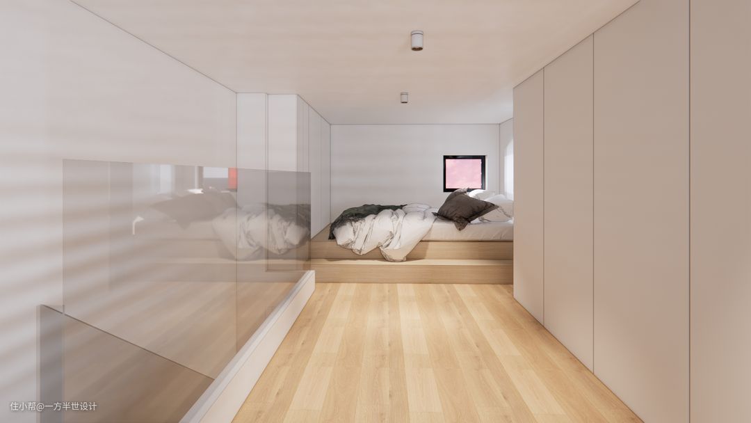 主卧放置在赠送空间,有 一面透气的窗户,中间没有任何隔断,整个空间不会被限制