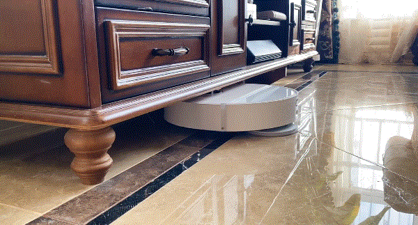 机身不到10cm的高度,可以完全通过我家电视柜下面,连扫带拖不留死角,棒!