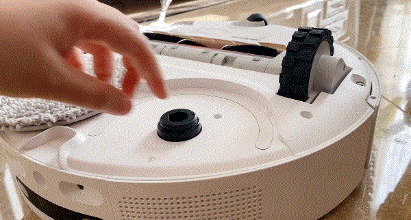 我把磁吸式拖布取下,可以看到一个黑色的组件,通过旋转可以改变拖布的高度,以此实现自动升降。