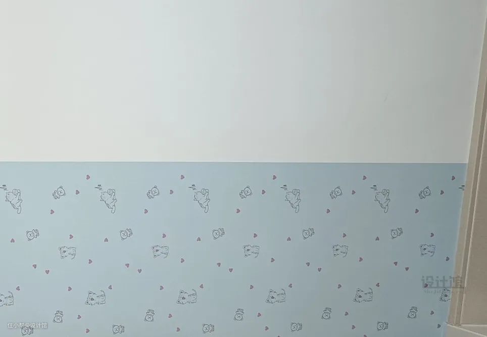 像乳胶漆与墙纸,由于墙纸比较薄,两种材质几乎是在同一个平面上的,如果两种材质衔接的位置不是很显眼的话,那么就直接刷好乳胶漆了再贴墙纸,中间有一点小接口也不会明显的;