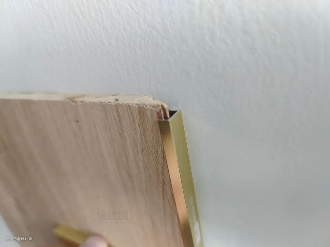 而对于木饰面侧边是切口、露出的材质不适合直接展示的,可以考虑在安装木饰面的时候,在木饰面的边上装一条金属收边条,也能起到很好的装饰过渡效果。
