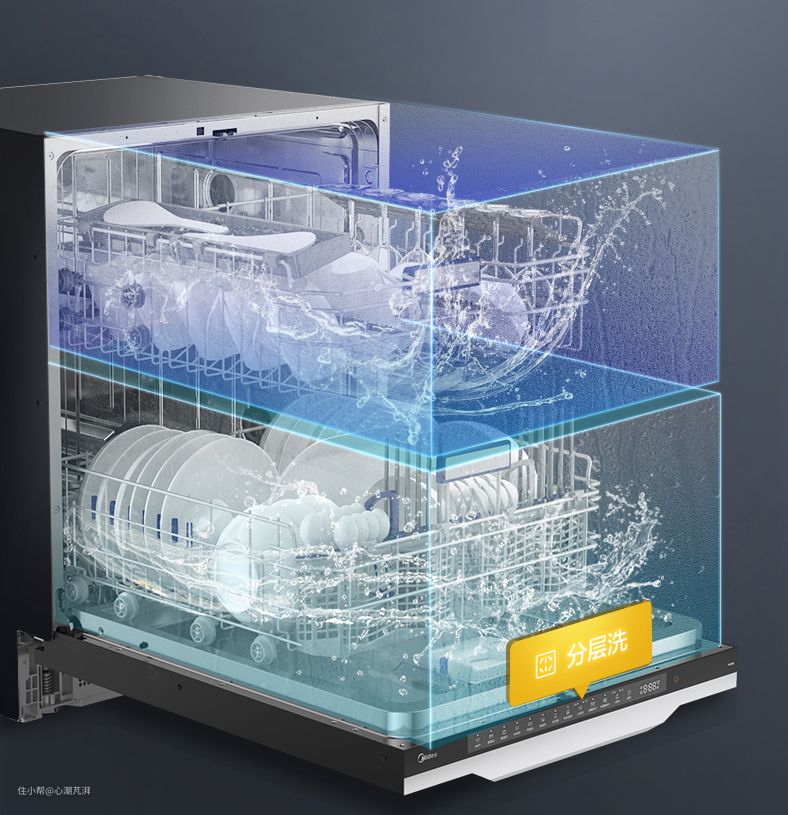 ▲分层洗:对于少量餐具,使用1/2分层洗,节约用水。
