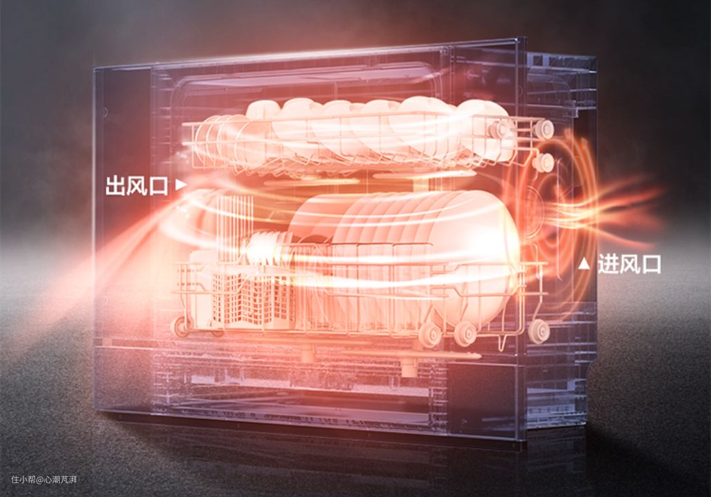 缺点:余温烘干,在烘干和除菌效果上都不如热风烘干;同时,由于没有热风和换风,餐具不能长时间存放,洗完后就需要抓紧取出,以防滋生细菌。