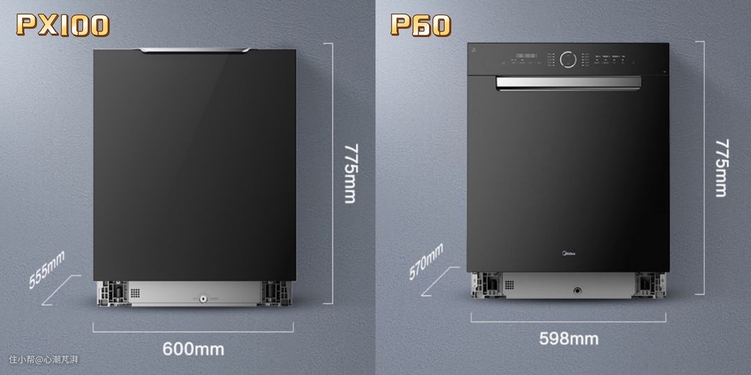 ▲PX100与P60实在是太像了,通过上面的型号参数比较表,小伙伴们也可以很清楚的看到这两款洗碗机的异同。