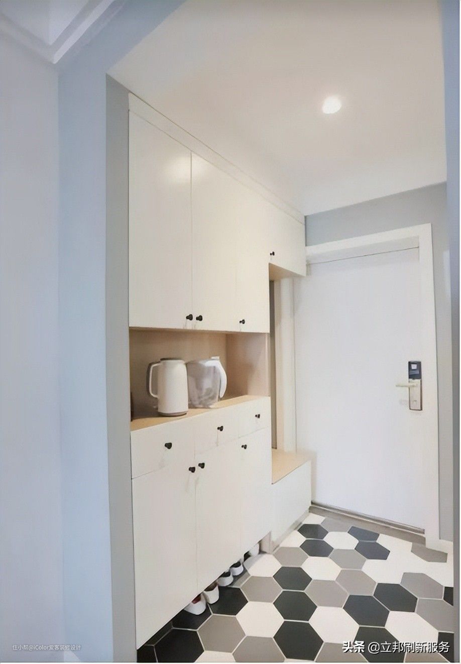 玄关的设计,首先要考虑让老人能进出轻松换鞋,所以需要对玄关进行整体设计,如果无法做定制柜体,那么也要增设一个换鞋凳。另外,要增设长柄鞋拔子,不用弯腰,就可提鞋。使用非常方便。
