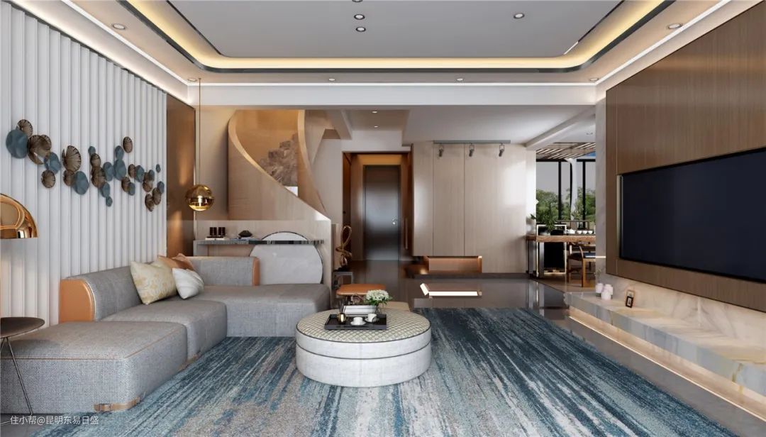 别墅结构空间大,但规划起来也比较复杂,客厅的新风系统、吊顶都要花费不少精力。