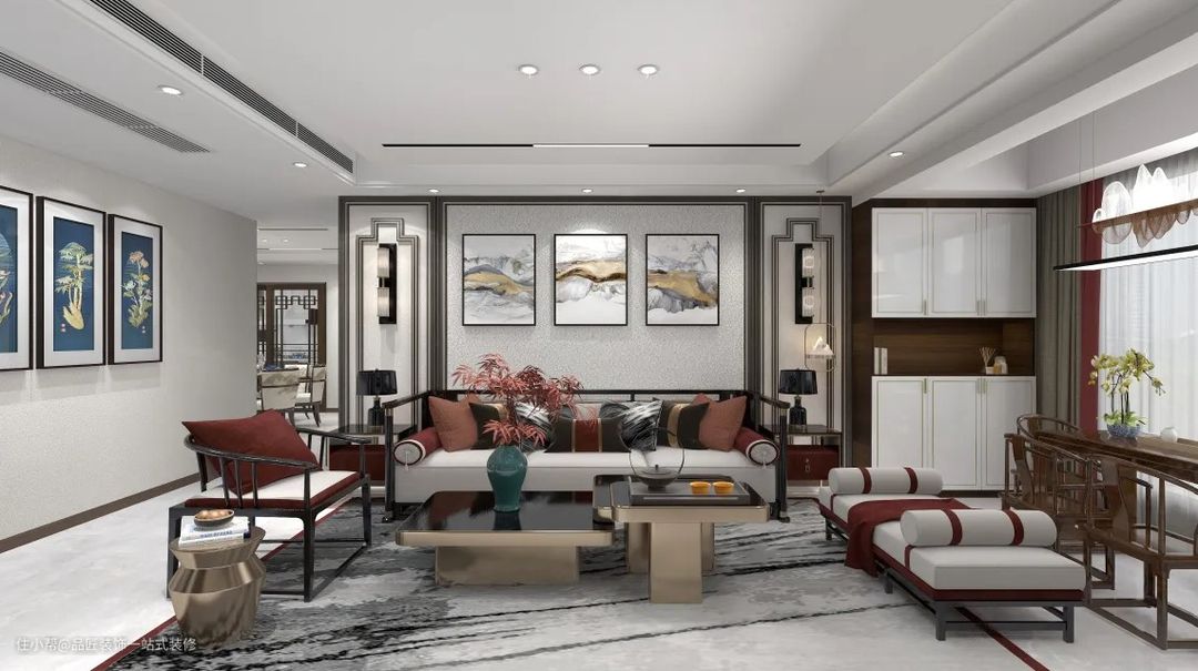 作为三代同堂的家庭,业主的父母希望房屋的装潢能体现独特的东方韵味,而业主本人追求端庄大气的风格。经过沟通交流,最终在设计师的建议下,双方都认可了新中式的设计方案。