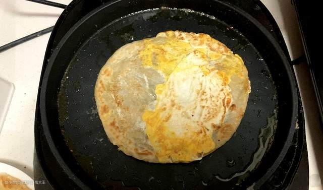 手抓饼用电饼铛做起简单方便,撒些油,敷上鸡蛋液煎熟即可。