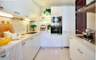 厨房吊柜最好使用感应无开关的照明,便于在台面进行操作;油烟机应在上方单独划分三孔插座;电饭锅、烤箱、榨汁机等常用的电器,应在台面上方多备几个五孔插座,电器再多也有地方用电,但要注意不能和灶具、水槽离的太近。