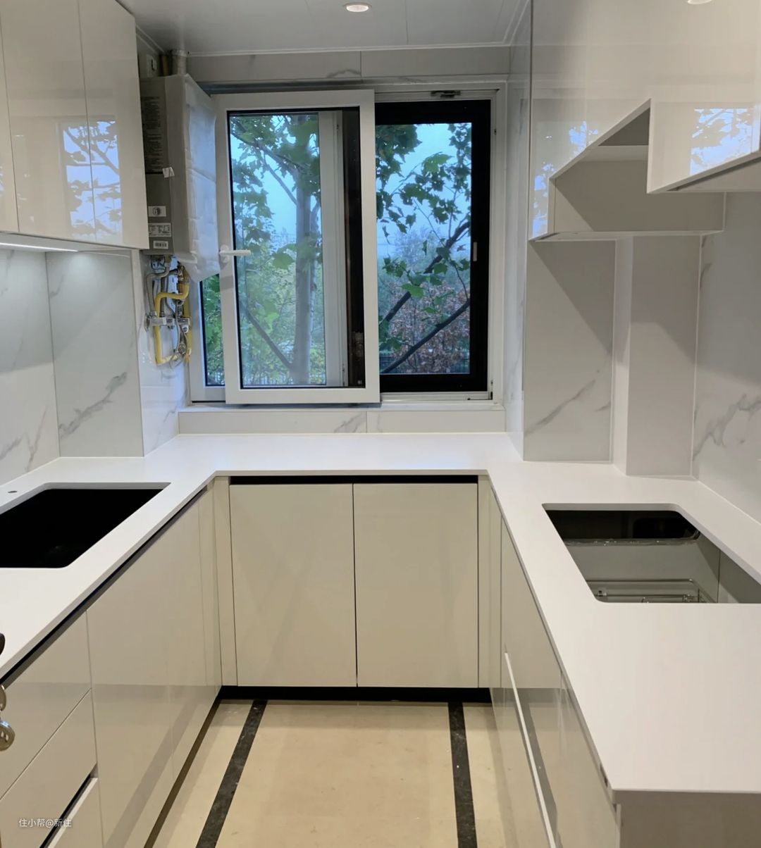 一气之下,屋主大手一挥,再掏一次腰包,把高低台抬平,看着舒服多了,也不用担心火烤石英石了。但新的问题也来了,抬高意味着此后炒菜得架着胳膊了。