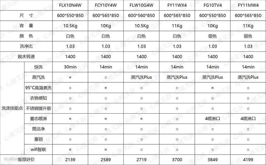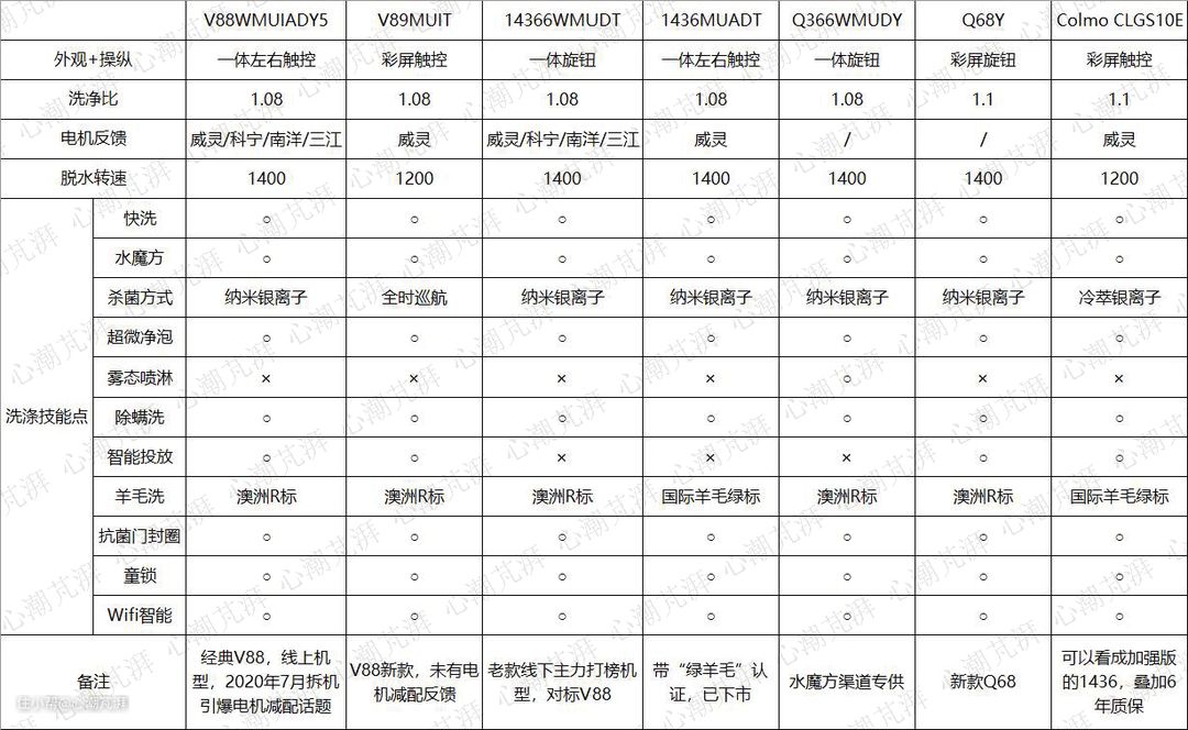 ▲这个系列其他洗衣机的对比,我讲过多次了,看这个表格就好。