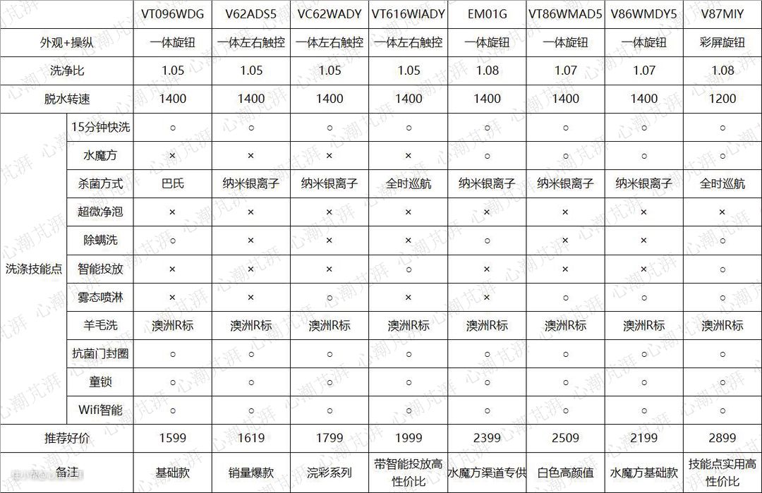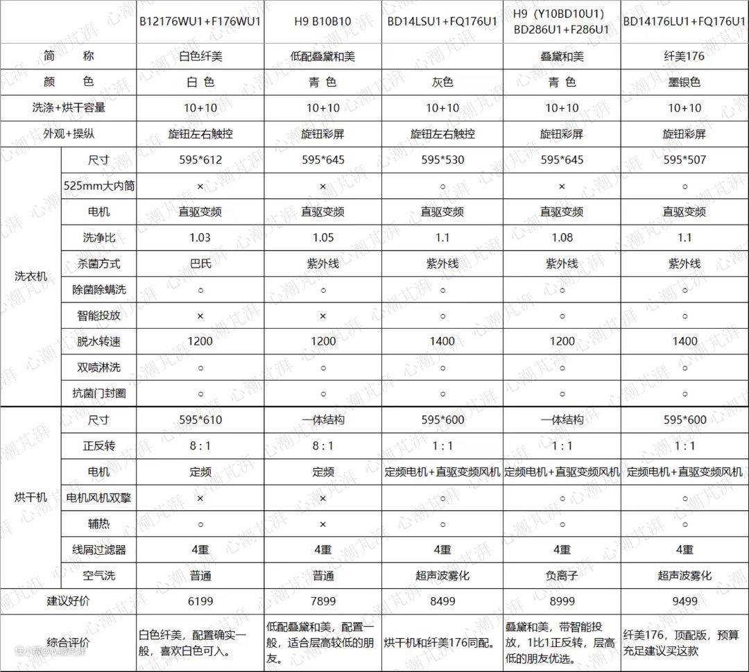 25款洗烘好物9张对比表格带你门清,买洗衣机请认准心潮原创哦