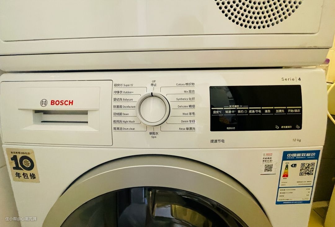 ◆经典博世4系,火了好多年。10Kg+9Kg洗烘套装,洗净比1.03,脱水转速1400转,一般家庭用OK。