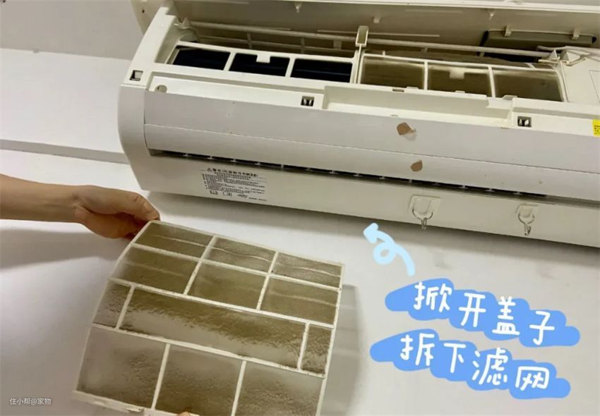 空调内置滤网不及时清洗,灰尘堵塞很容易影响出风效果,加大耗电量。因此用空调要先将内机的滤网拆下来清洗干净。当然,别忘了室外机的清洁。