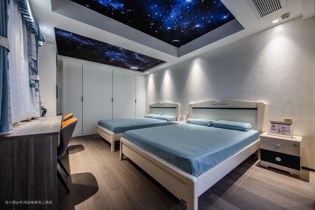 按照业主的要求,在孩子居住的次卧室设置了星空吊顶,营造出充满天文元素的卧室环境,满足了孩子们的喜好。