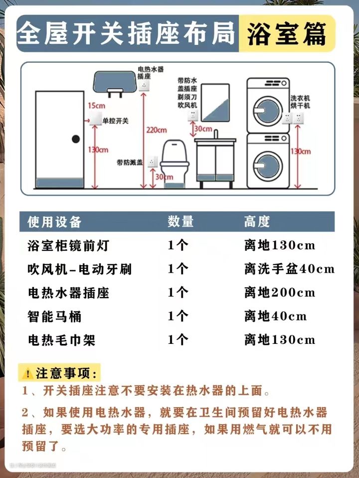 卫生间插座开关布局图细节和注意事项: