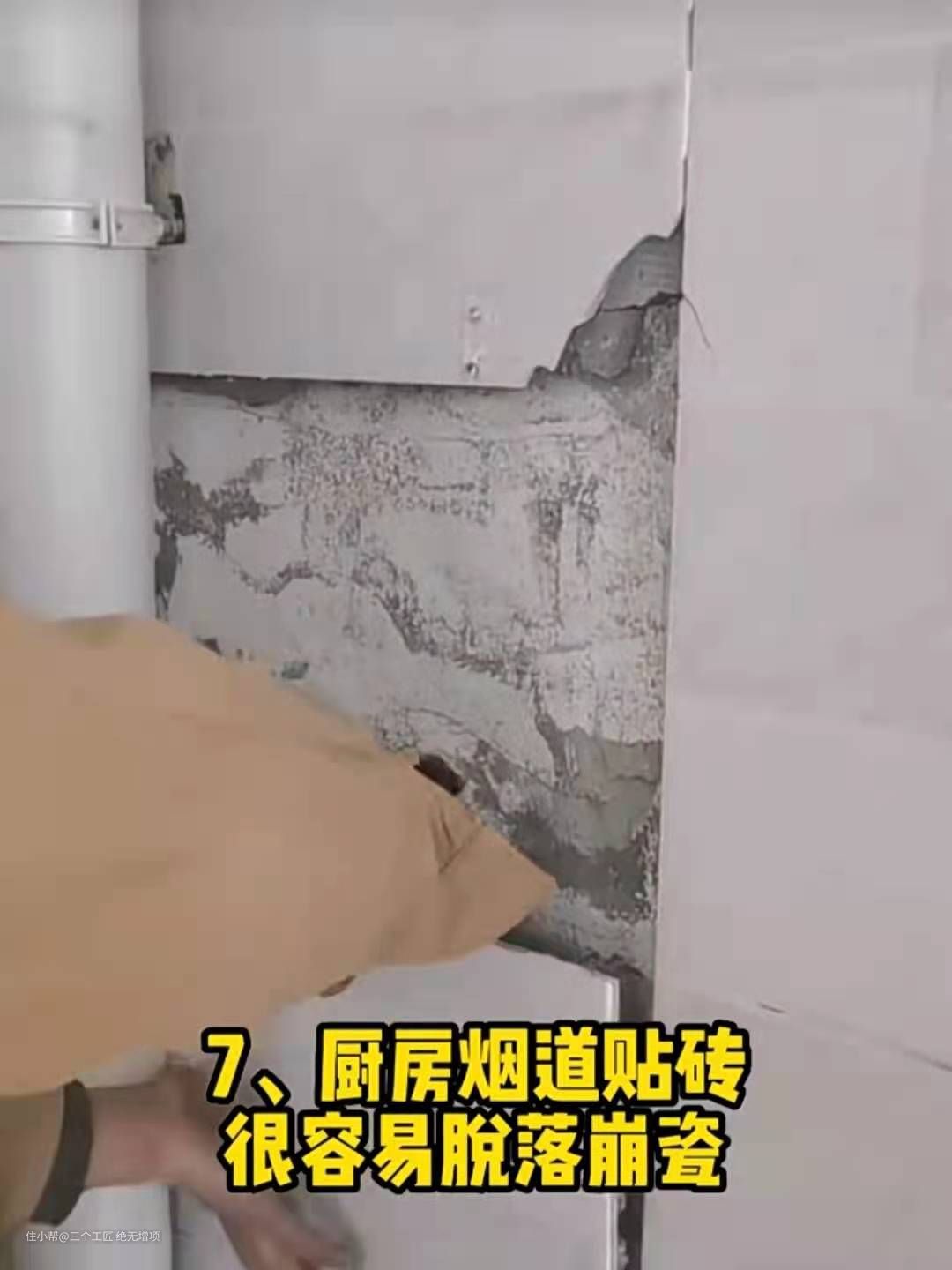 施工时一定要提醒师傅先用单层红砖包裹烟道隔热,再用水泥挂钢丝网贴砖,这样就不会空鼓脱落了。