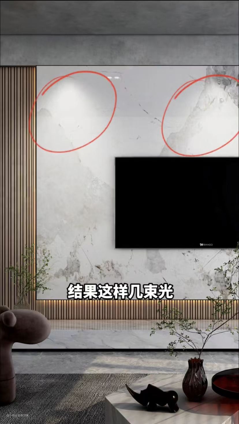 你的背景墙本来用了上档次的材质,结果这样几束光让背景墙的品质感降到了极点,