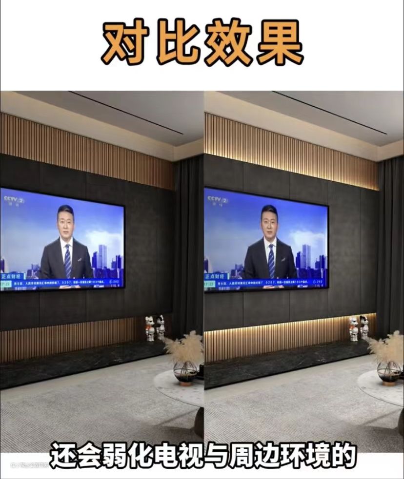 当我们看电视的时候,这些灯光会形成光斑直射眼睛,对眼睛的伤害很大。