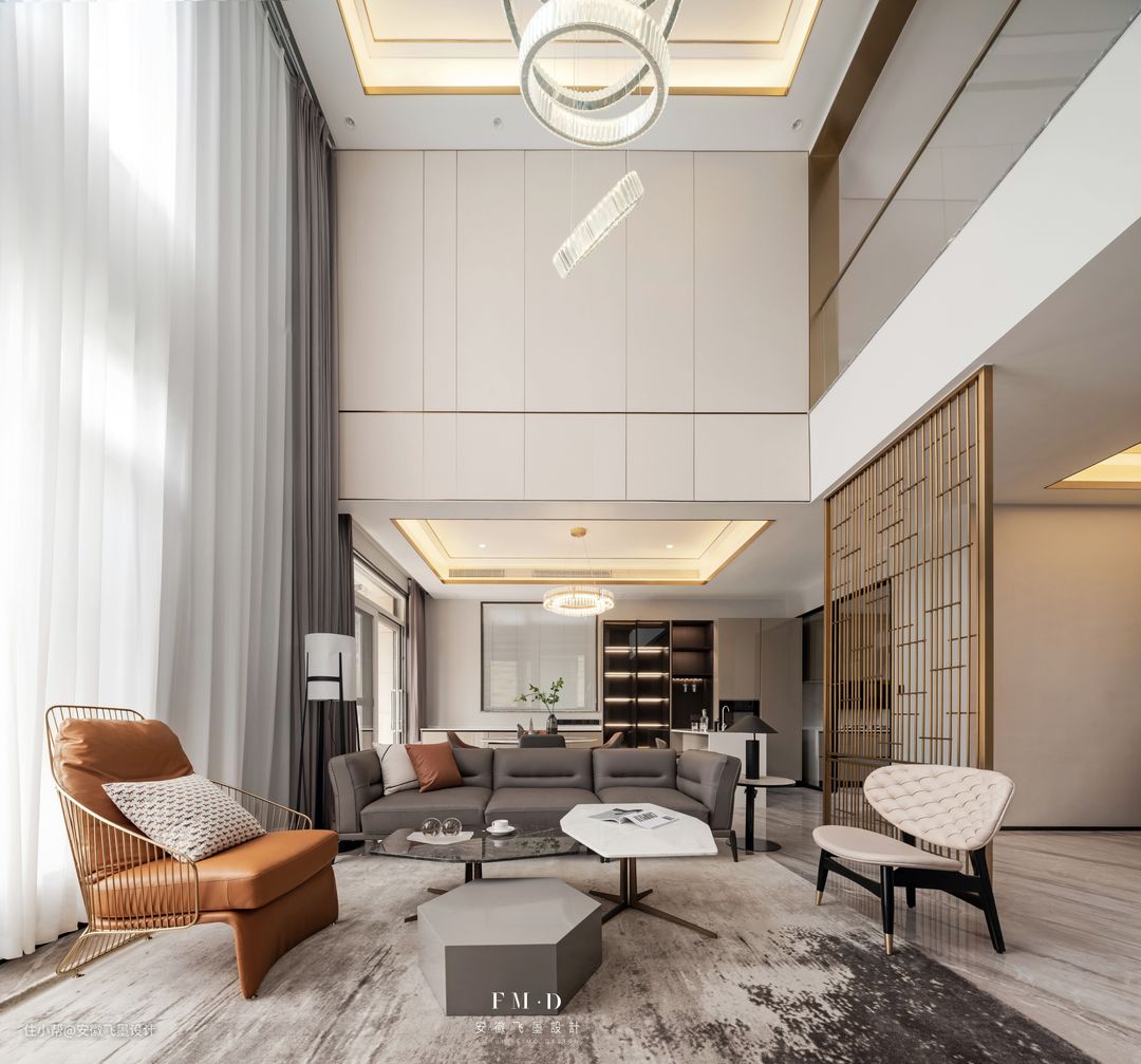 客餐一体,对于别墅大横厅来说更是再合适不过了!以沙发为中心点,一面是大气舒适的客厅,另一面便是家里的用餐场所了,一张圆桌,家人围坐在一起,好有氛围感。