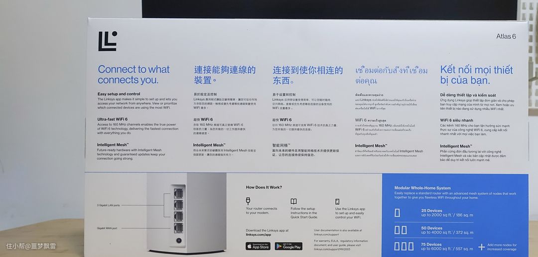 听群里老哥说过,领势是做了30多年的老牌路由器厂商,一直是MESH技术的开拓者和领头羊,以安装和组网方便著名,并且稳定性也是第一梯队。因此今年趁着618活动,给自家更换成了领势Velop系列的入门款WiFi6路由器。