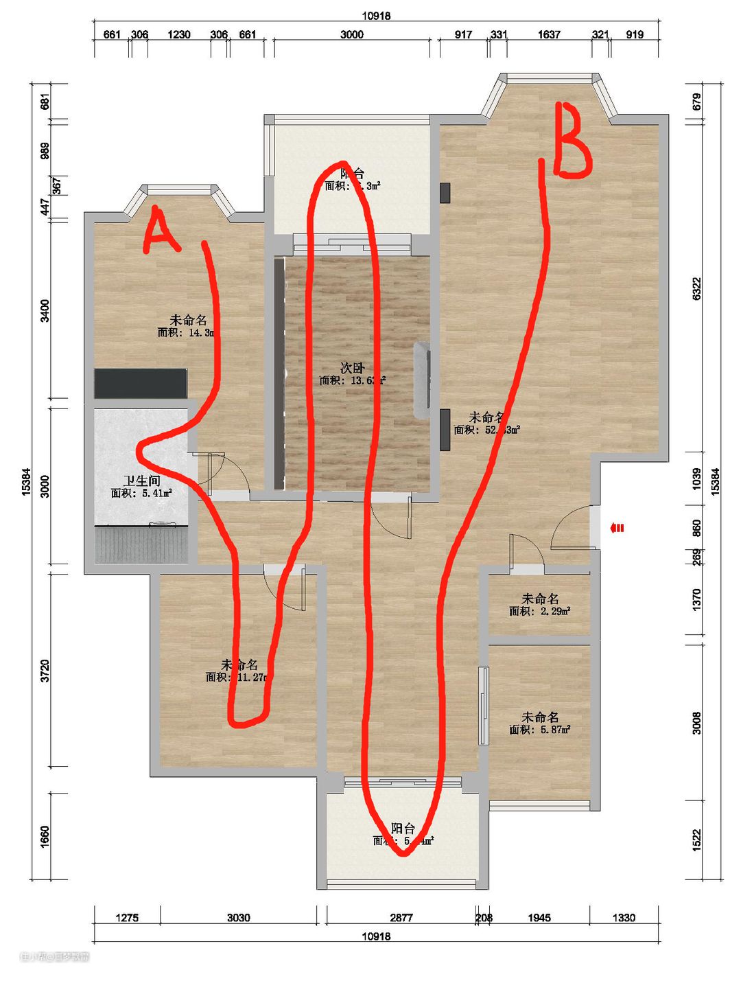 接下来进行了一次全屋漫游测试,路线大致是这样的,从A点出发,根据红色路线走到B点: