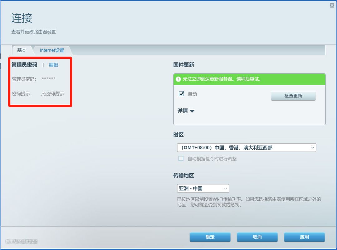 接下来输入登陆管理账户和密码。账户名为admin,默认密码也是admin。如果需要修改或者重置管理密码的话,可以在网页端的“连接”选项卡中进行操作: