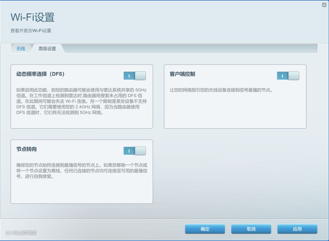 领势MX2000模式是没有打开160mHz频宽的,打开的方法也很简单,进入领势主路由的网页管理页面,在WiFi设置一栏,启用动态频率选择(DFS)功能即可。