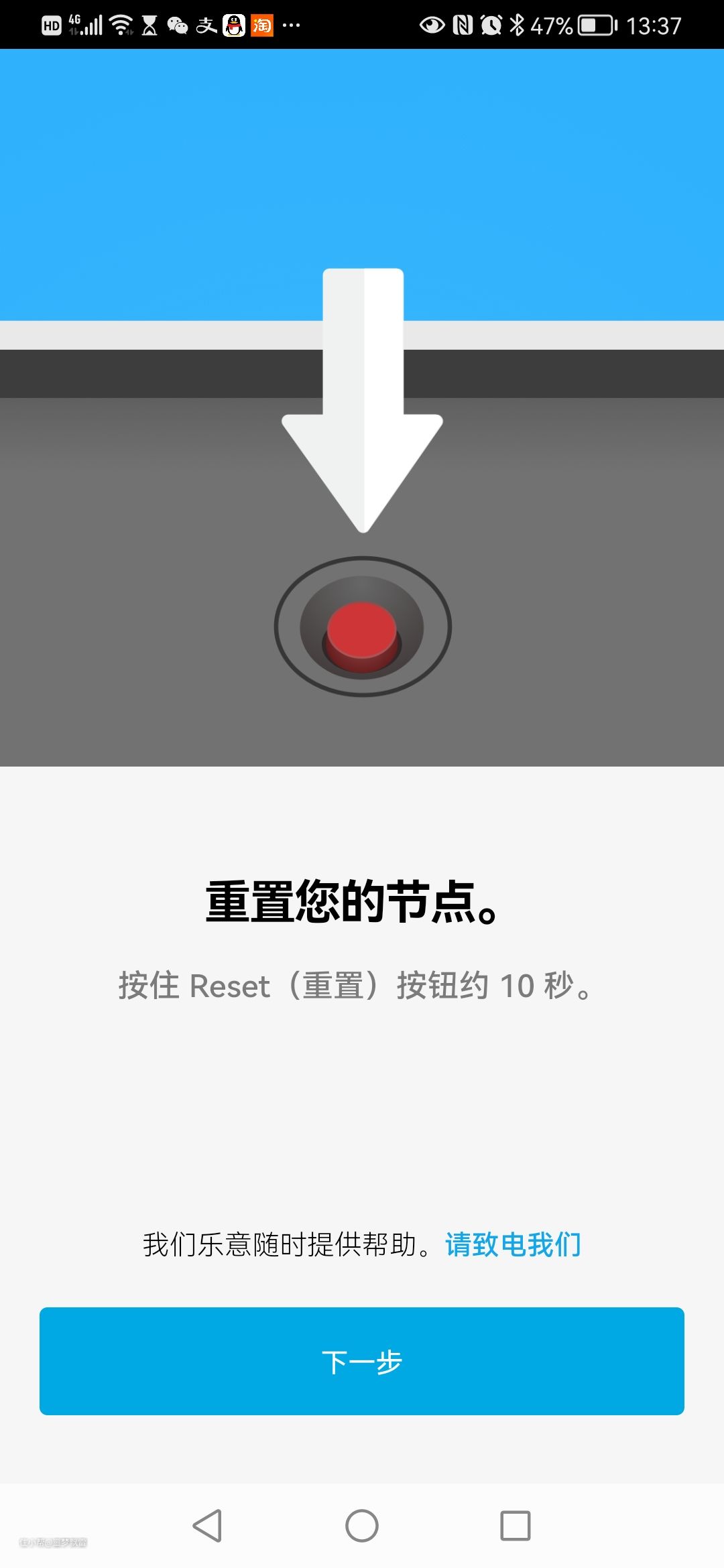 但是实际情况是,不知道是因为我手机的兼容问题,还是APP本身的问题,通过APP添加新MESH节点的时候,会反复提醒让我将路由器进行重置:
