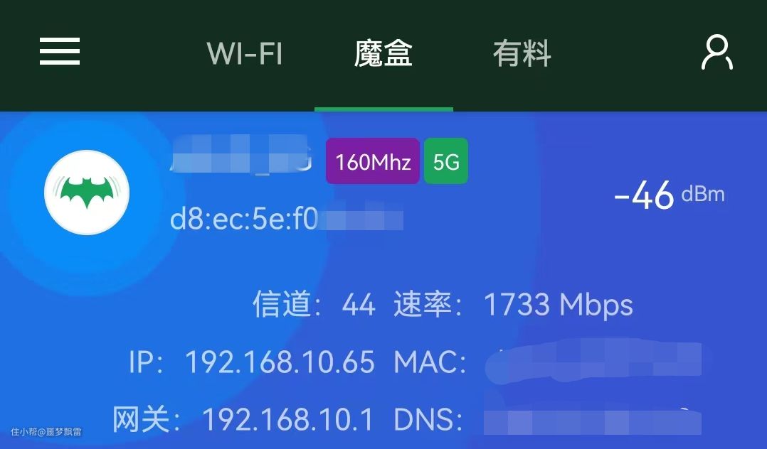 启用160mHz高频宽不仅对于WiFi6设备的连接速率有提升,对于WiFi5设备也很实用。以我的华为P30为例,本身只支持WiFi5的2t2r,启用MX2000的160mHz之后,与路由器的连接速率为1733Mbps,如果不启用,通过80mHz连接路由器,那么最高速率只能减半,成为866Mbps。