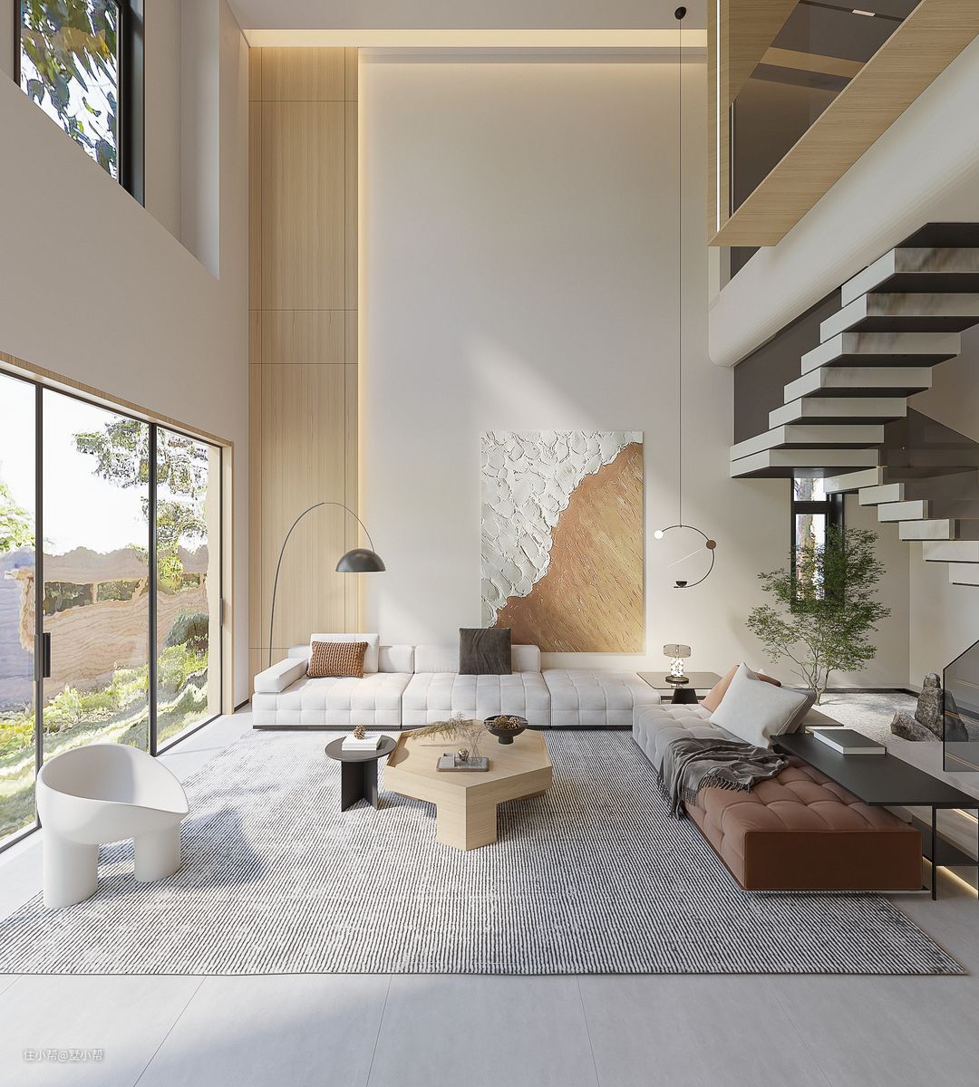 别墅设计|350㎡极简侘寂风!原木色打造北欧清净无杂舒适家~