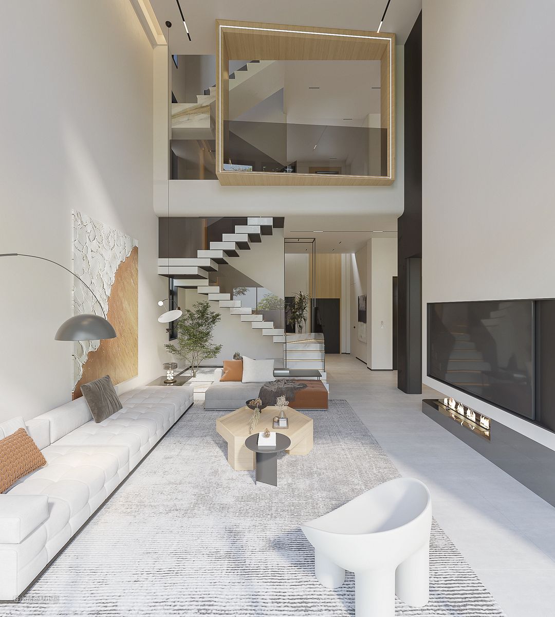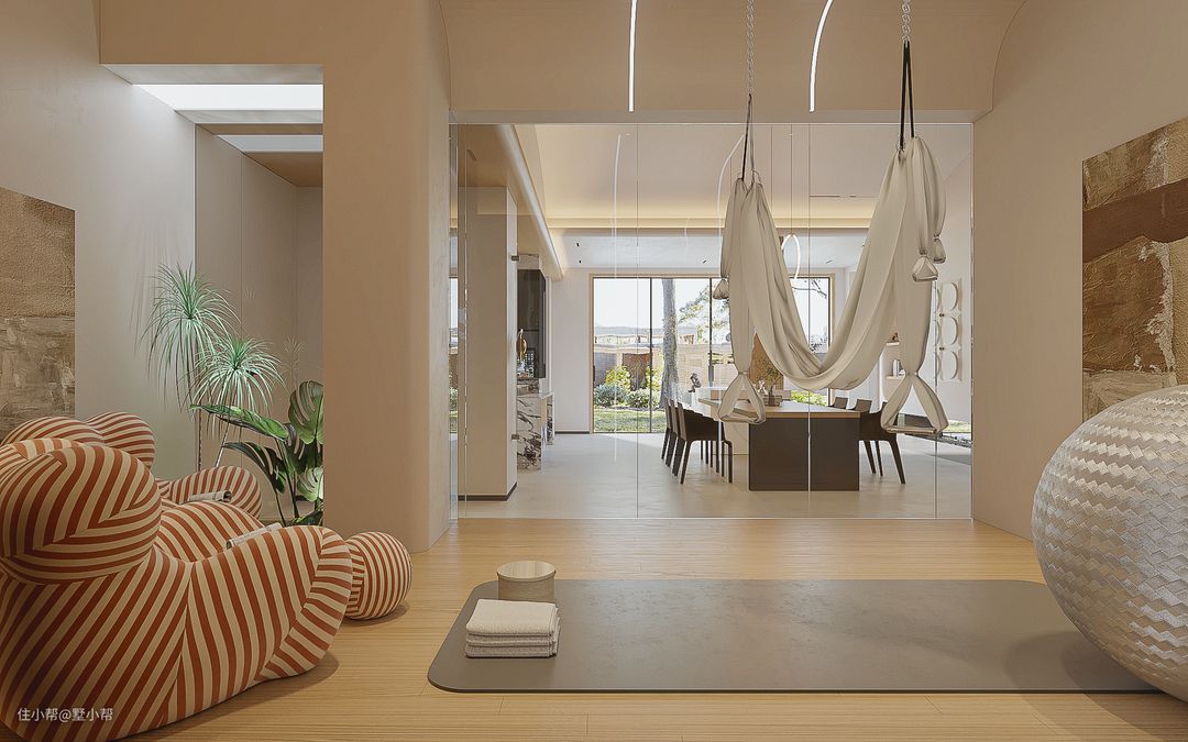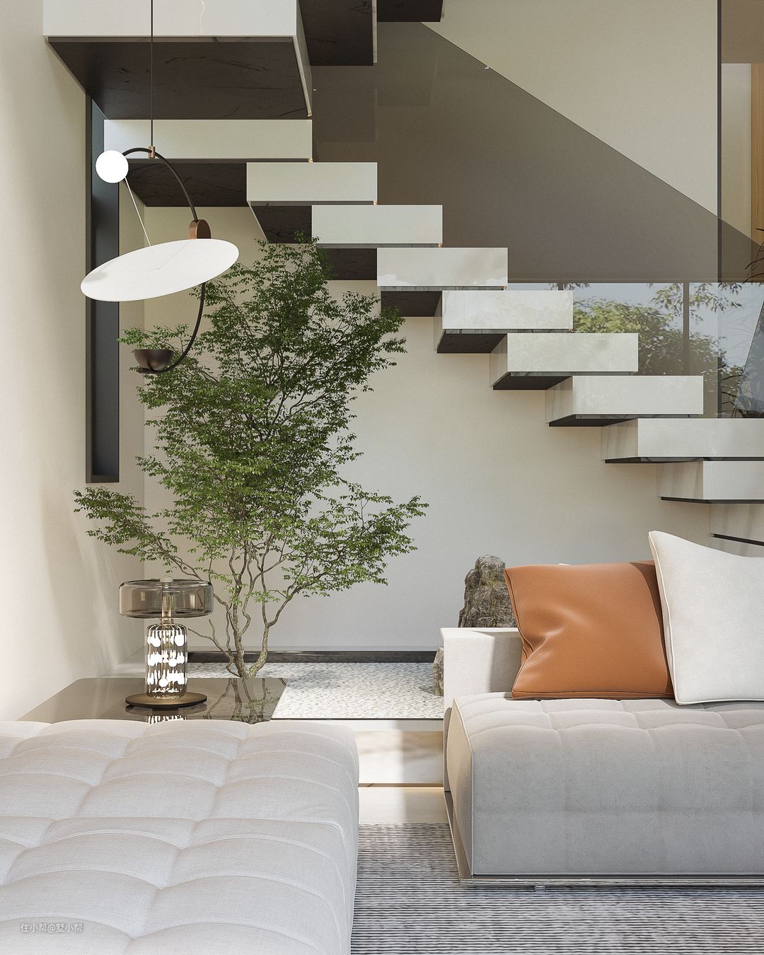 奶白色与木色完美融合,将北欧和日式的元素强制升级出出色的侘寂风又多了一份烟火气息,混搭的设计不管你是横着走还是竖着走都毫无违和感!挑空复式大客厅,边角运营弧形的圆滑处理,让空间不再那么尖锐冷峻~