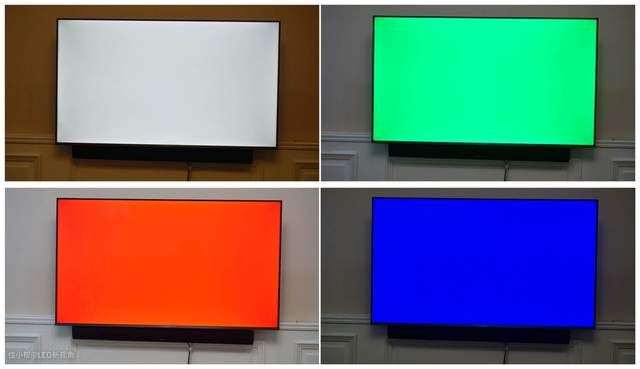 把电视机屏幕亮度调到最高,然后用单色块来测试是否有坏点和漏光。实际测试结果完美,而且特别检查了边框附近,颜色显示也很均匀。
