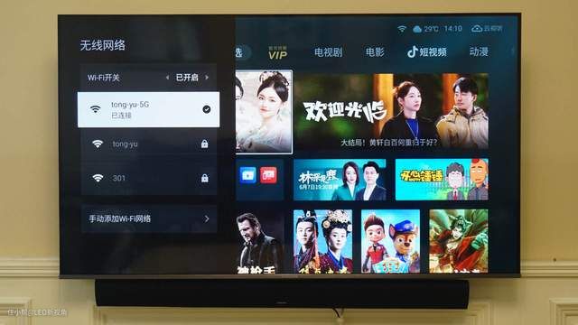 联网时发现,这款电视支持2.4G和5G双频wifi,这点在目前大部分智能硬件不支持5G的情况下,尤为重要,而且特别是拿来玩游戏,看高清视频,5G效果还是非常明显的。
