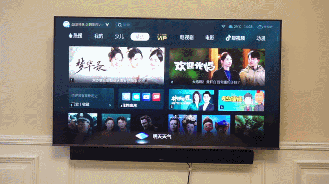 无开机广告,通过遥控器开机,或者直接语音”小T开机“,就能打开电视机,而且居然是没有开机广告的,直接初始化后,就进入主页。这个体验可要比华为、小米等互联网电视有良心,完全不用等待。
