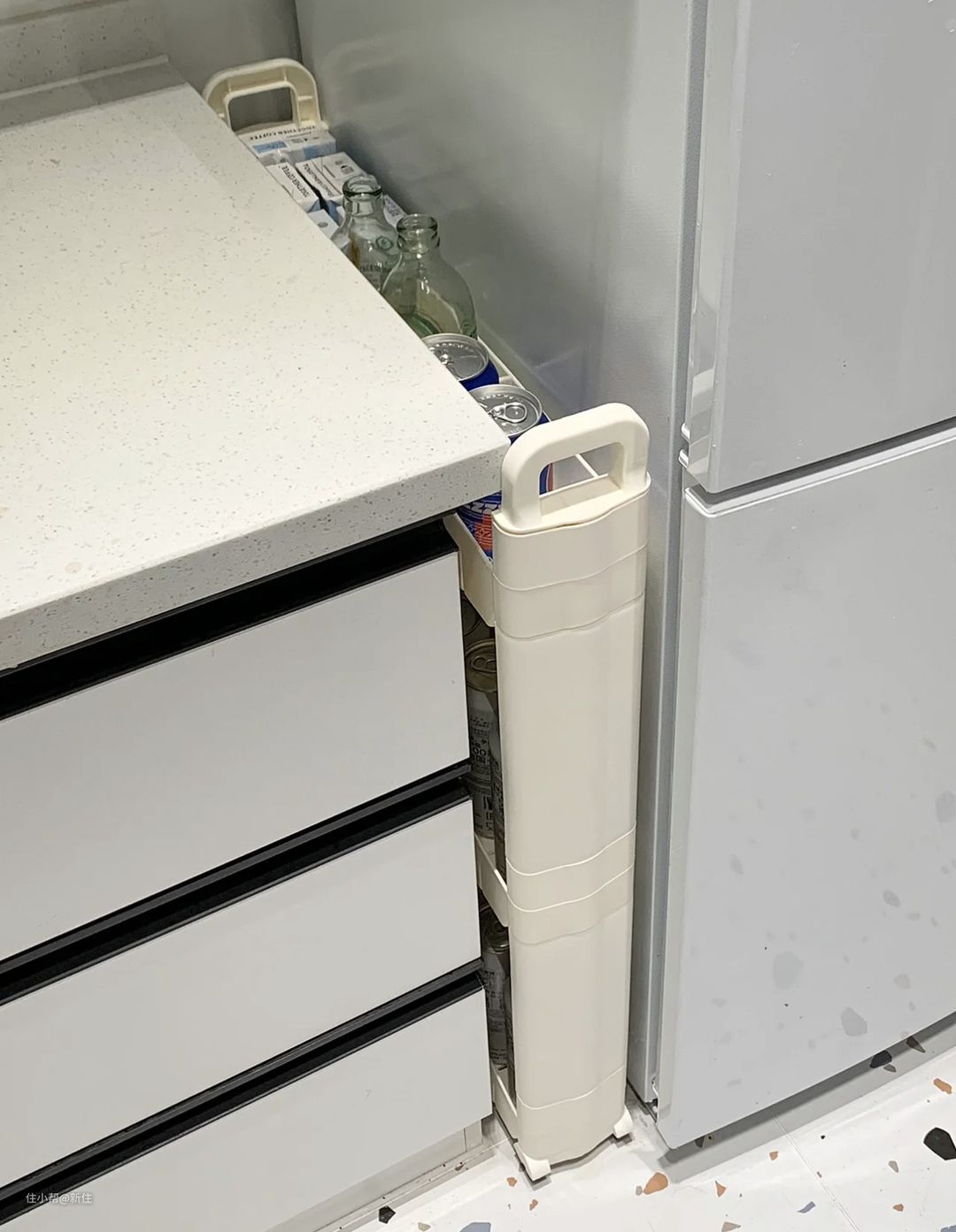 若你家厨房,没做内嵌式的冰箱设计,那么冰箱与橱柜之间必然会有一个缝隙。