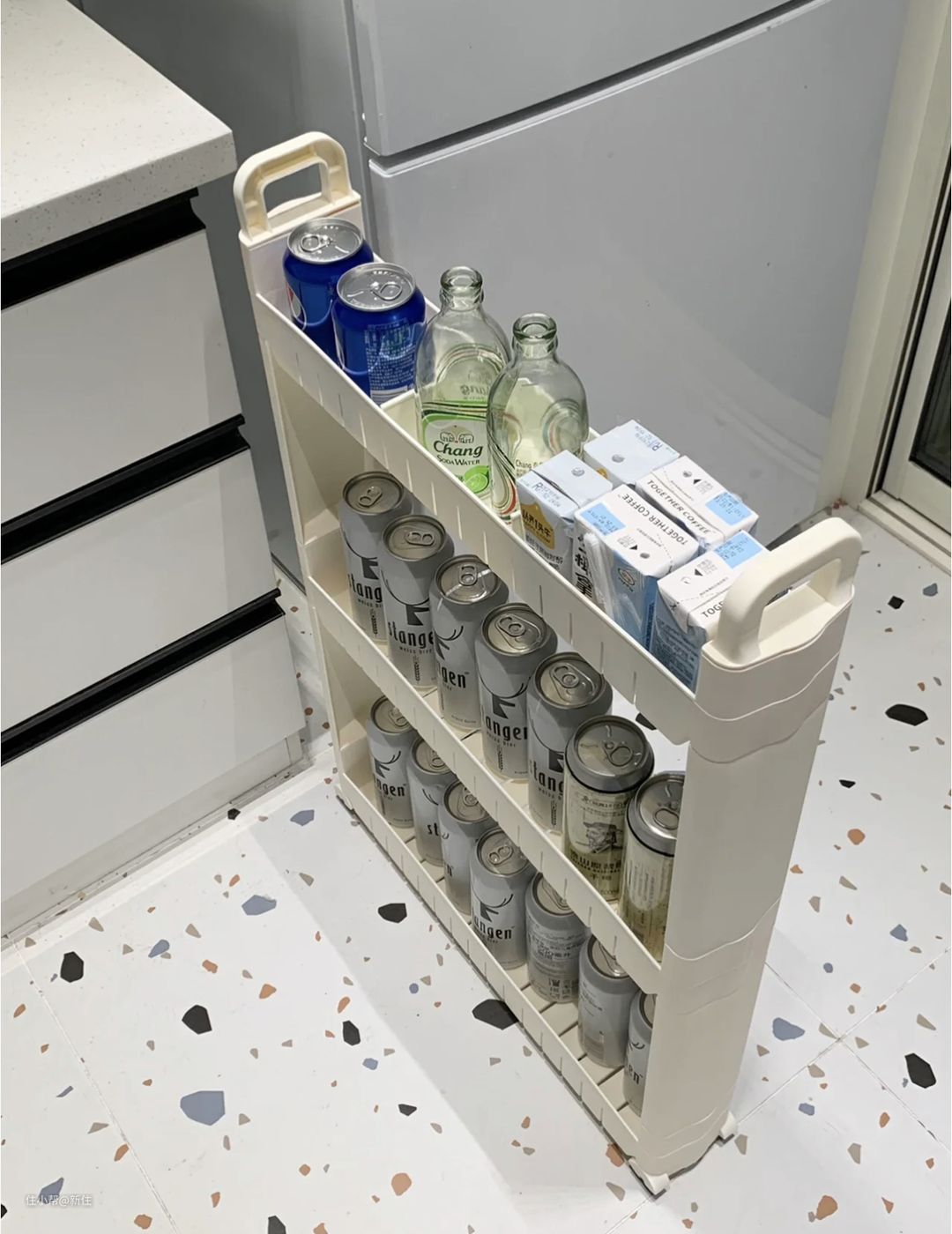 别浪费!可以放一个带滑轮的小置物架进去,平时没有存在感,还能填补缝隙,需要取放东西的时候拉出来,很方便。