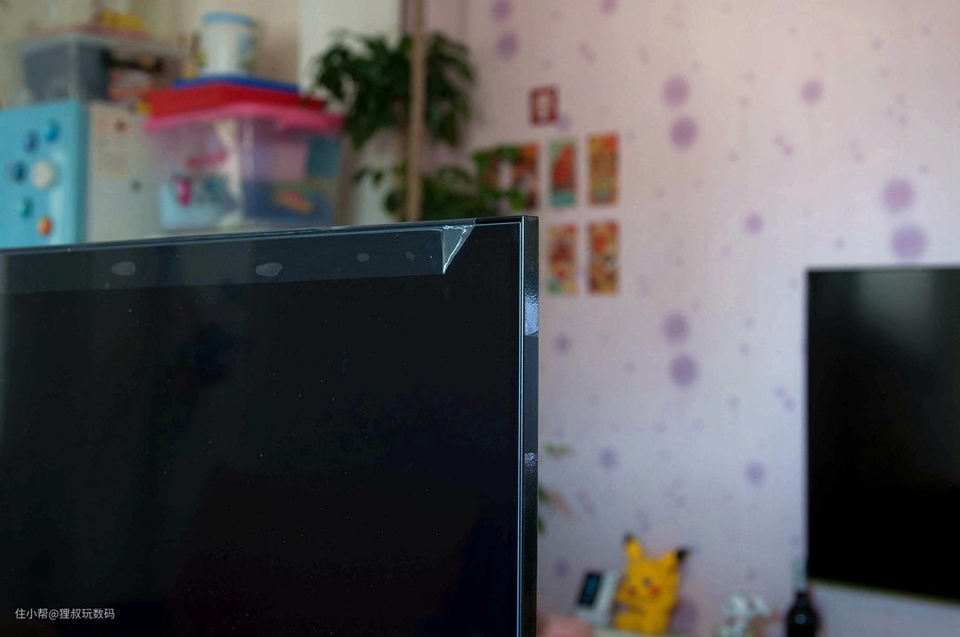 给新品撕膜也是一种乐趣,建议大家在装好支脚后就揭除表面塑料膜哈,时间久了会不好揭。看大品牌的细节设计依然非常用心,塑料膜的一角采用了折角设计,这样更方便我们将其去掉。
