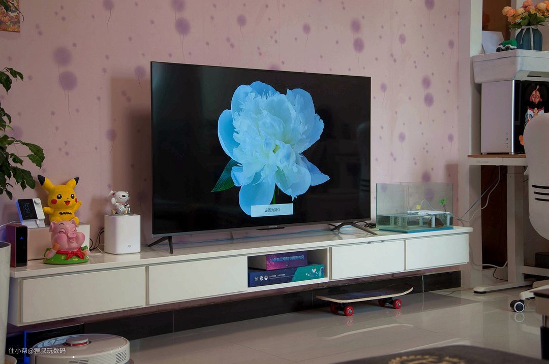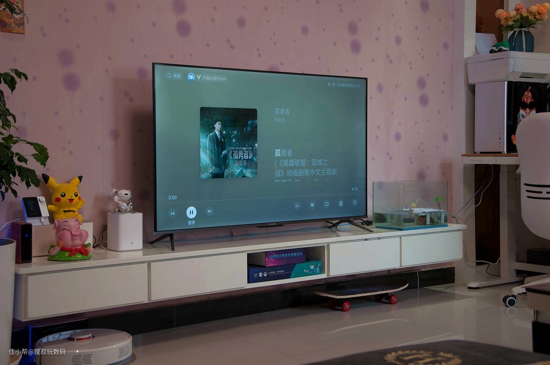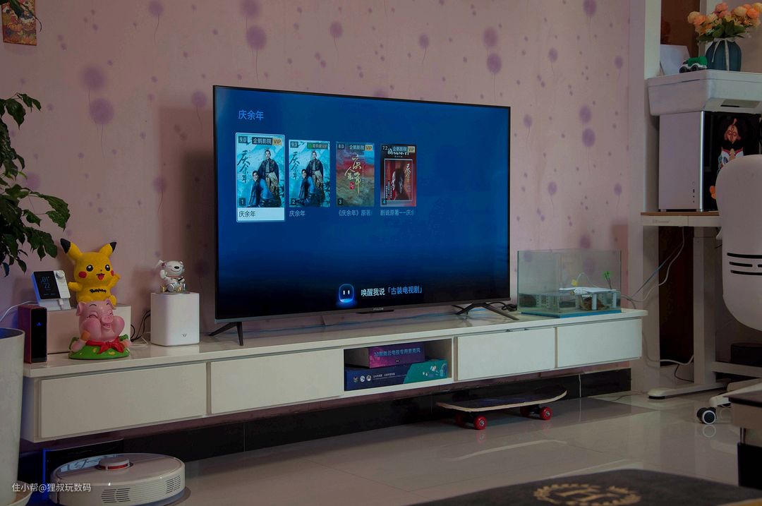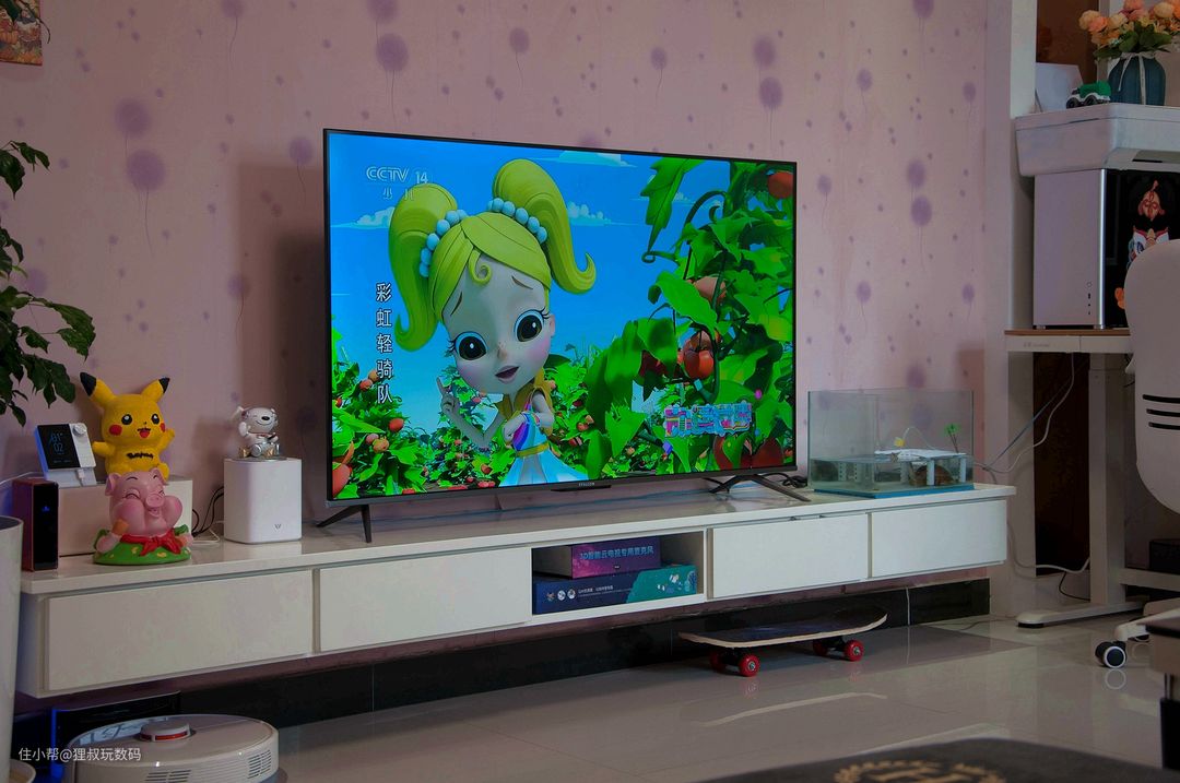 有些小伙伴可能对雷鸟这个品牌不太熟悉,它是TCL旗下新锐品牌,背靠TCL集团和华星光电屏厂,目前发展势头惊人。先给大家张实拍图解解馋,这是放在我家客厅电视柜上的样子,这颜值,这色彩,这超窄边框你可喜欢?