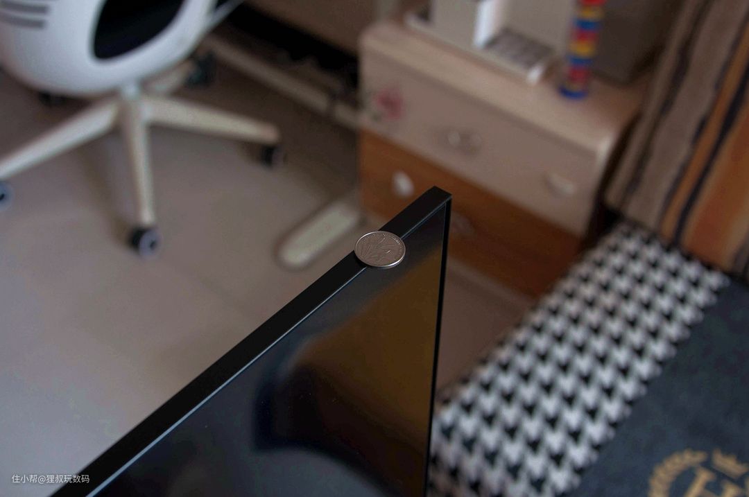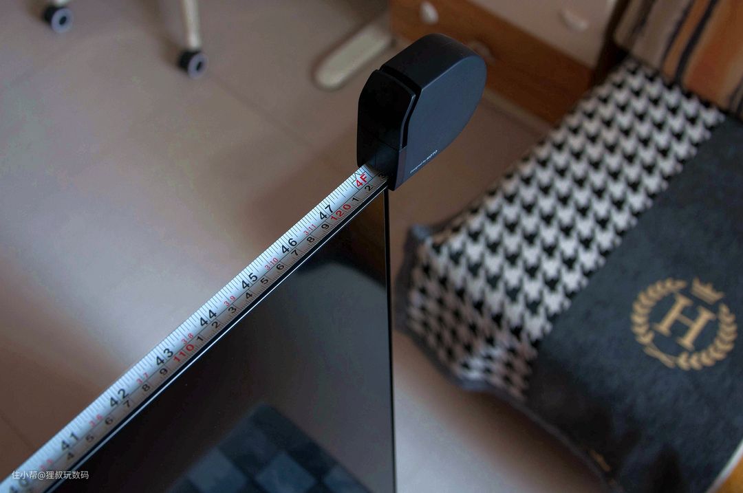不确定自己家放多大尺寸的电视合适吗?教你个小技巧,先找到自己喜欢电视的尺寸,然后用卷尺比一下大致位置,这样看是不是就明了多了。雷鸟·鹏6智能电视55寸版的产品尺寸为:长1226㎜×含底座高767㎜(净高710㎜)×含底座宽290㎜,它的边框超窄,屏幕的厚度也非常薄,最薄处仅有一角硬币的一半厚。