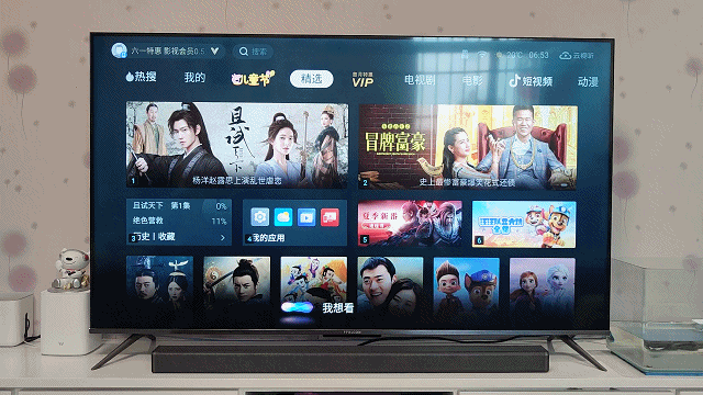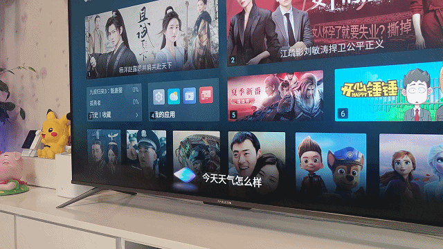 雷鸟·鹏6智能电视55寸版预装的是基于安卓9.0开发的电视系统,开机没有烦人的广告,直接进入系统,这感觉挺好的。进入系统后按遥控器上的设置键可召唤出功能菜单,这动画过度的够不够自然。功能菜单和内容分类标签都可以自由编辑,大家可以根据自己的使用习惯随意DIY哈。