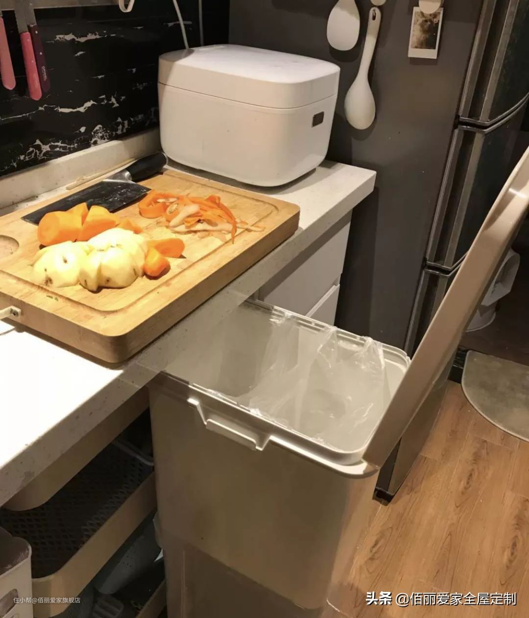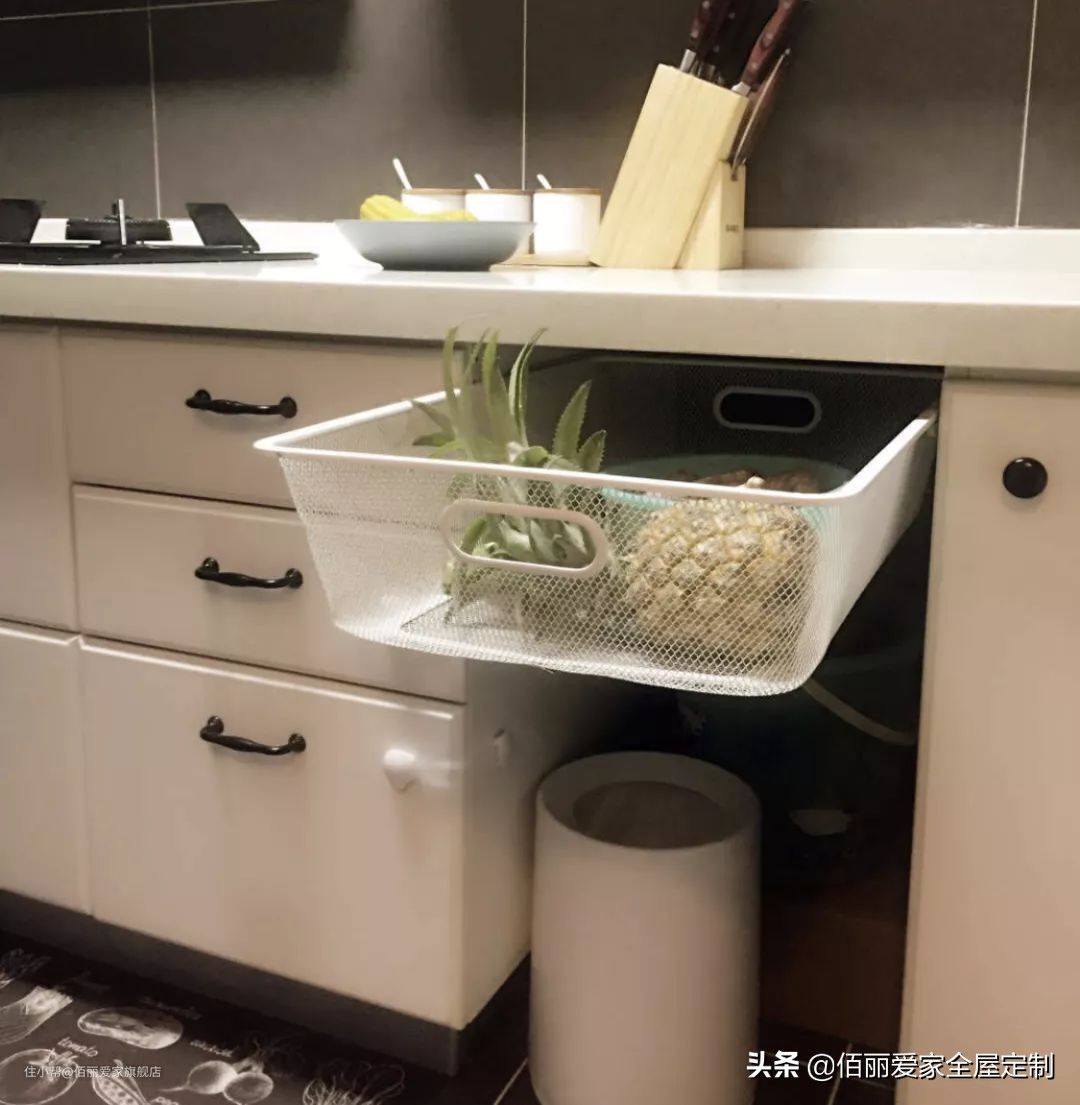 地柜也可以留出部分区域放置拉篮