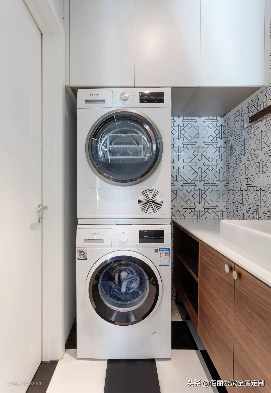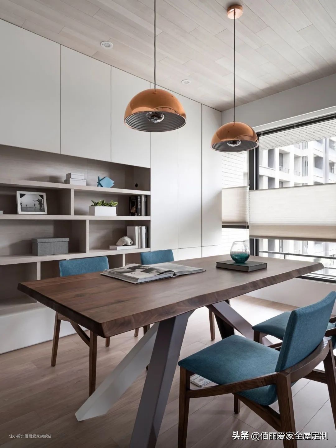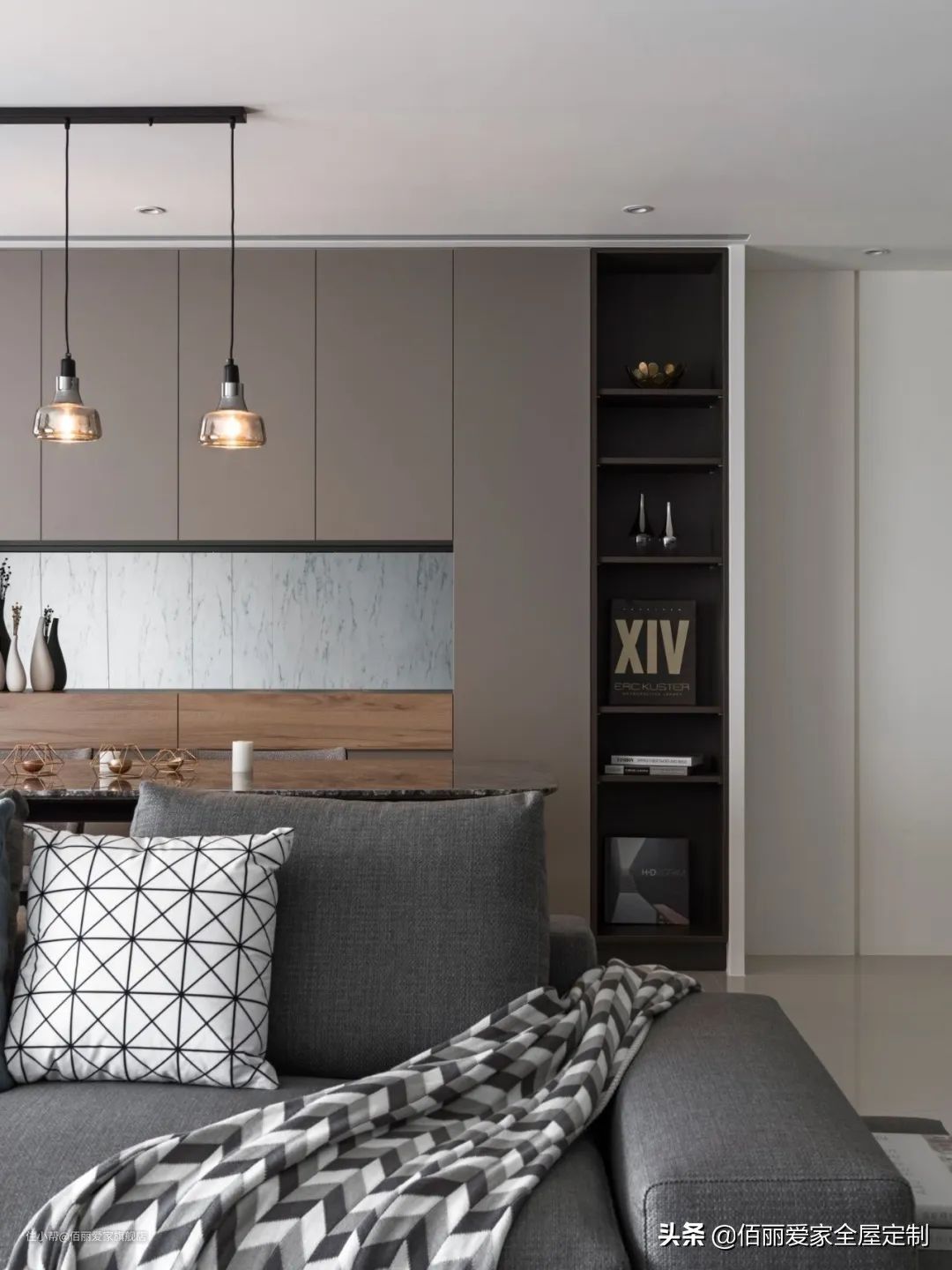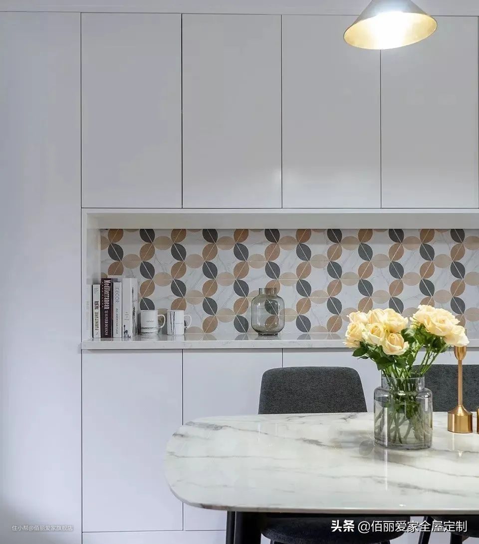 采用封闭橱柜+半开放式组合设计