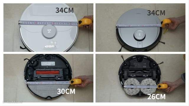 ▲我凑齐了除云鲸外的两款主流扫地机器人,分别是石头G10S(左)与科沃斯 X1 OMINI(右),再加上中间的360小章鱼拖地机器人,今天我们就通过来说一下360小章鱼拖地机器人结构上的优点。我们直接测量几款机器人拖地宽度和机身直径: