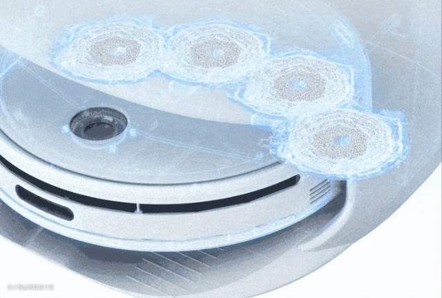 ▲而360小章鱼拖地机器人搭载了4个旋转拖布,其拖地模块总宽度约为33cm,机身直接同样约为33cm,做到了拖布与机身同宽,所以沿边拖地无死角,理论上拖地更彻底。