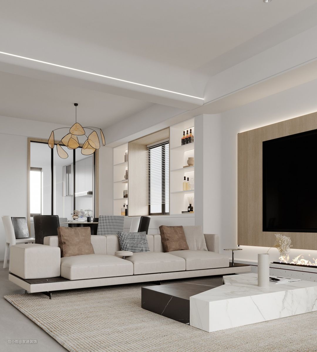 客厅的沙发是温柔的奶白,看起来十分的舒适、温馨。